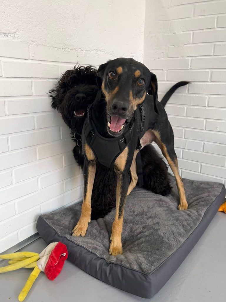 Un espacio seguro y divertido para que tu perro socialice y juegue mientras tú trabajas.